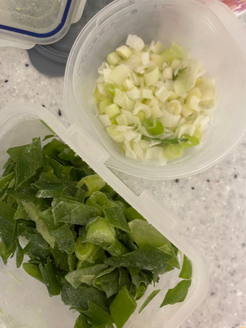 첫 미션 때 주신 대파도 넣었어요. 음식을 소분해두니깐