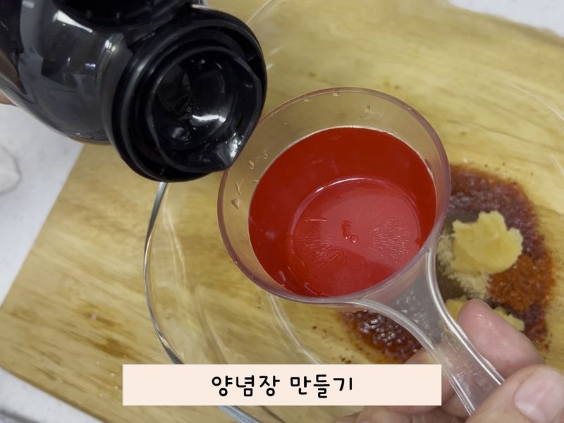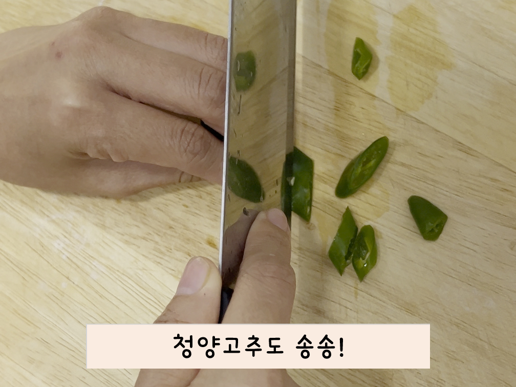 새미네부엌 레시피에 나와있는 그대로 잘 따라서 해보려고 긴장하며 요리했어요. 양념들을 계량 스푼으로 계량할 때 동생과 함께 숫자를 세며 신중하게 양념장을 만들었습니다. ㅎㅎㅎ 그리고 갈치가 아닌 동태살을 넣었기 때문에 결과가 잘 나올 수 있을지 더욱 긴장됐던 것 같아요☺️