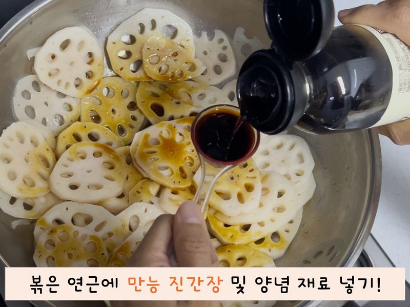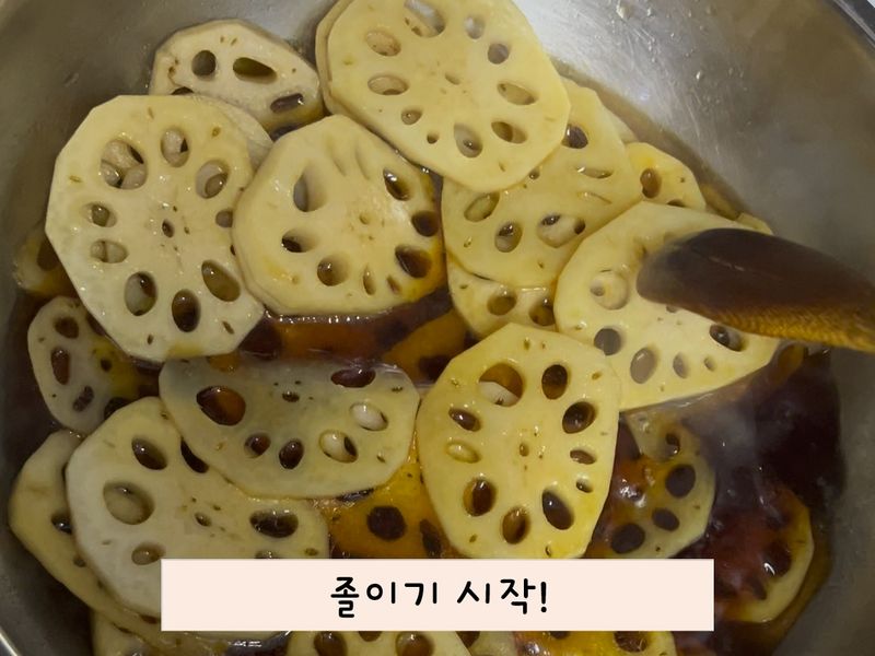 레시피에 나와 있는 양보다 2배로 만들어서 그런지 연근을 졸이는 시간이 생각보다 많이 걸렸어요.