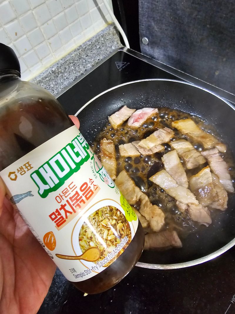 장조림 소스가 없어서, 그냥 집에 있는 멸치볶음 소스를 써보기로 했습니다.