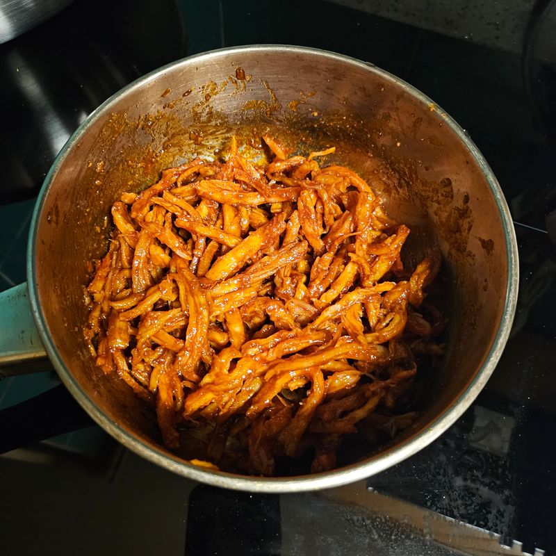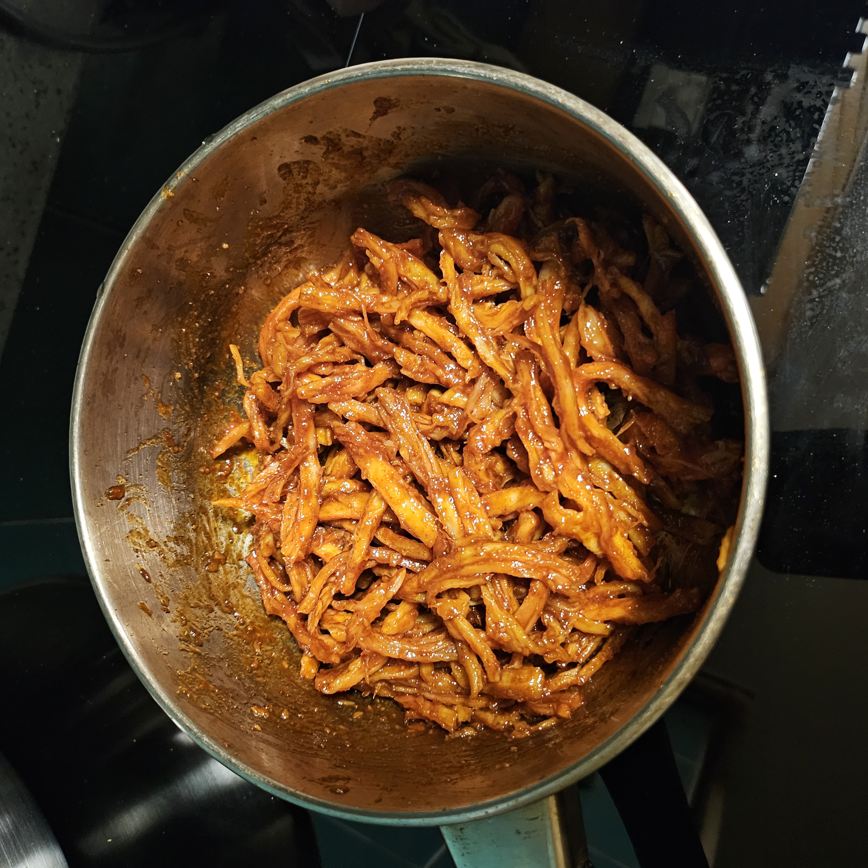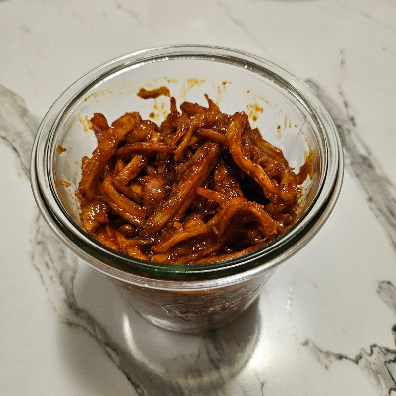 진미채를 1분 정도 살짝 불리고 만들었더니 식감도 부드럽고, 소스가 정말 맛있어서 감탄했어요. 요리하는 동안 집안 가득 퍼진 맛있는 냄새에, 동생이 이 소스로 다른 반찬도 만들어달라고 조를 정도였어요ㅎㅎ