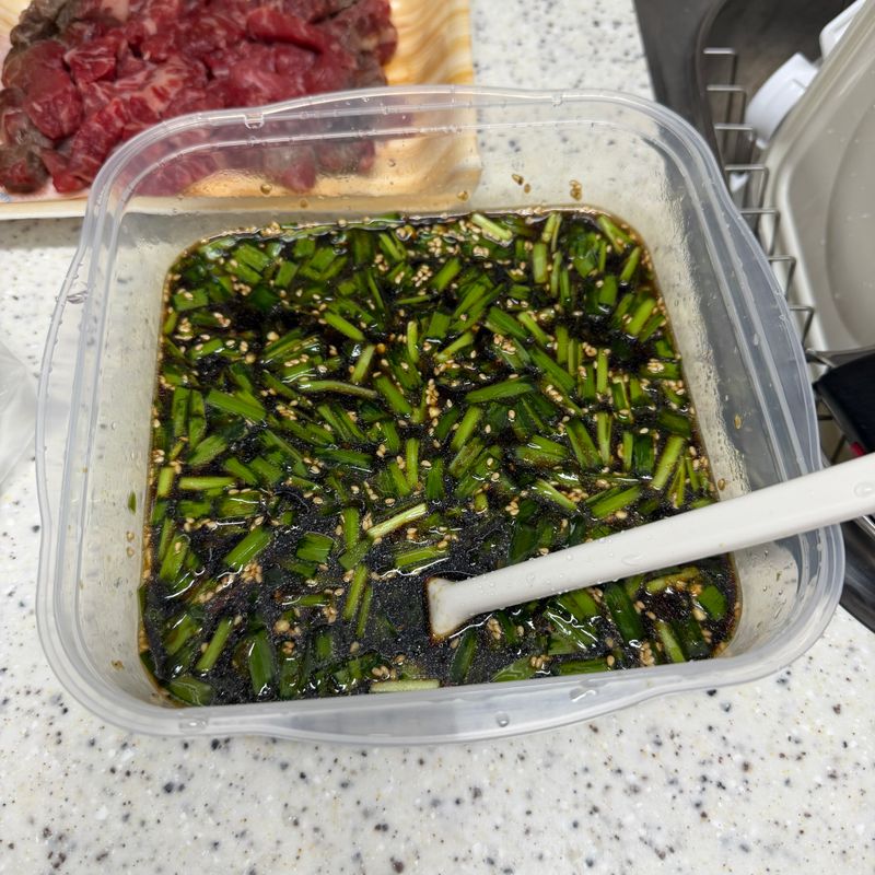 3. 계란을 식히는동안 양념장만들기 : 다진마늘 1스푼, 대파반줄, 양파반개, 청양고추 2개, 참깨, 간장 종이컵으로 1컵반, 물2컵, 참기름 반컵, 올리고당 반컵