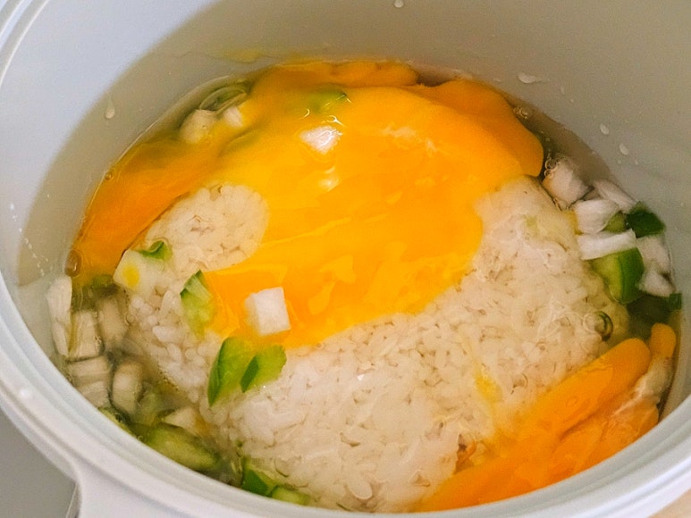 마지막으로 계란을 넣는데, 그냥 노른자만 터트려 넣었어요.