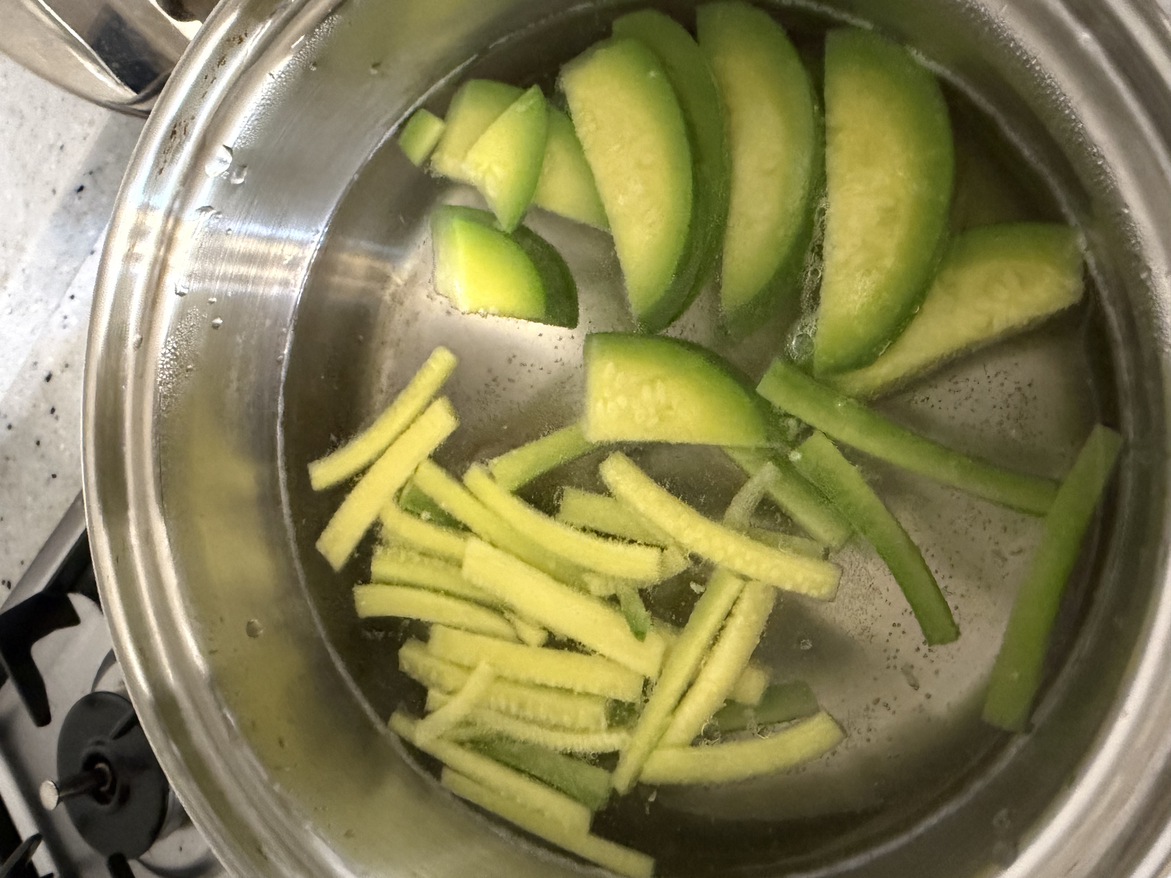 애호박을 꽝꽝 얼린 뒤 바로 쓰려면 조금 난감할 수 있는데,