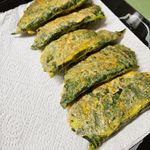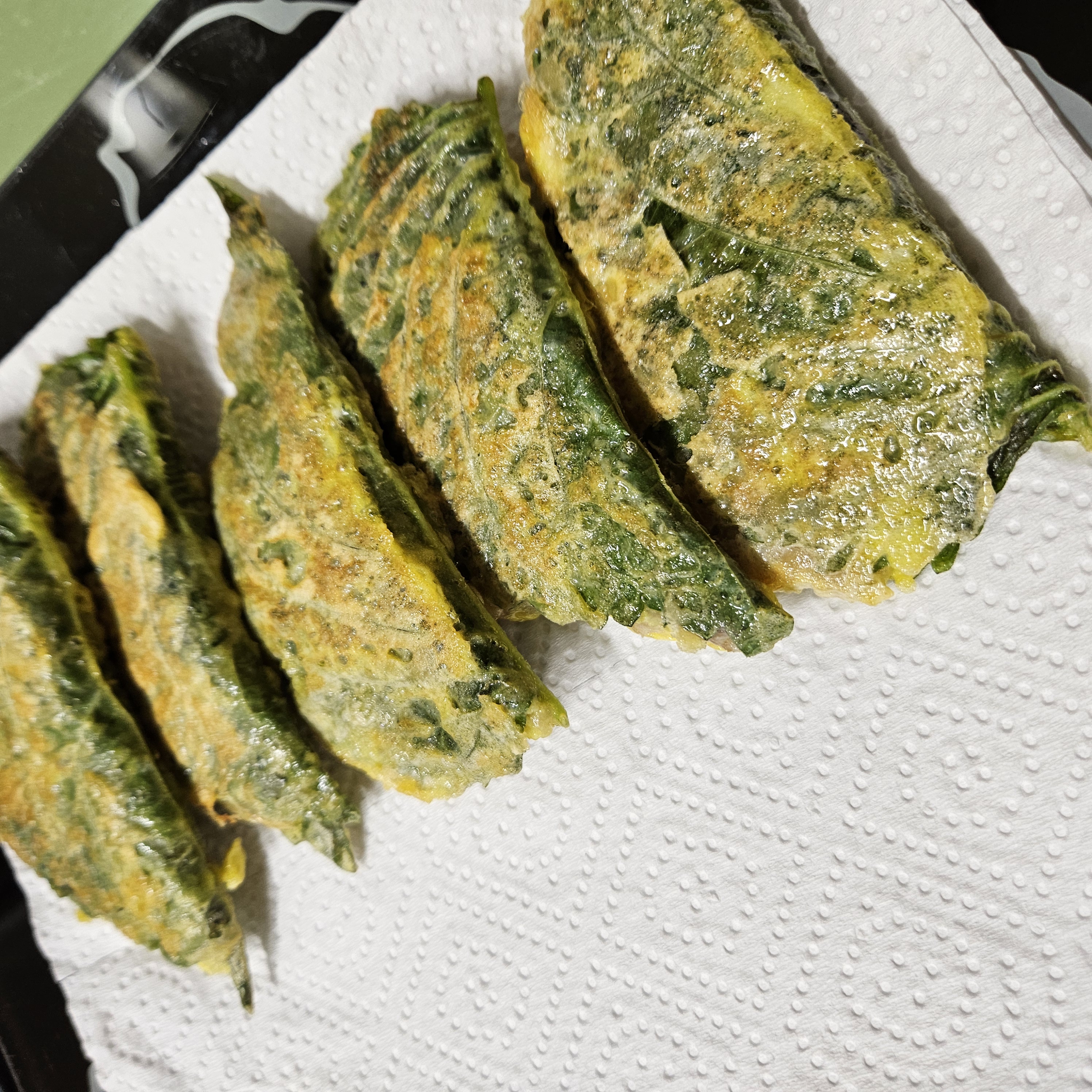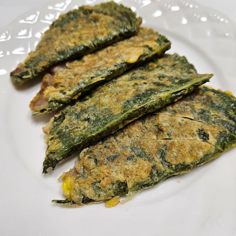 뒤집개로 잘라내긴 했는데 속을 채울 때 꽉 채울게 아니라 눌러 부칠 거 생각해서 적당히 채워 넣어야 하는구나를 몸소 또 깨닫게 되었네요. 음식은 책으로 이론으로 공부 하는게 아닌 직접 해봐야 는다 라는 걸 매번 할 때 마다 느낍니다.