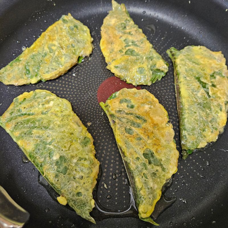 전 하면 파전이 생각나지만 미트 볼 하면서 남은 완자가 있어서 깻잎 전도 만들어보기로 했어요.