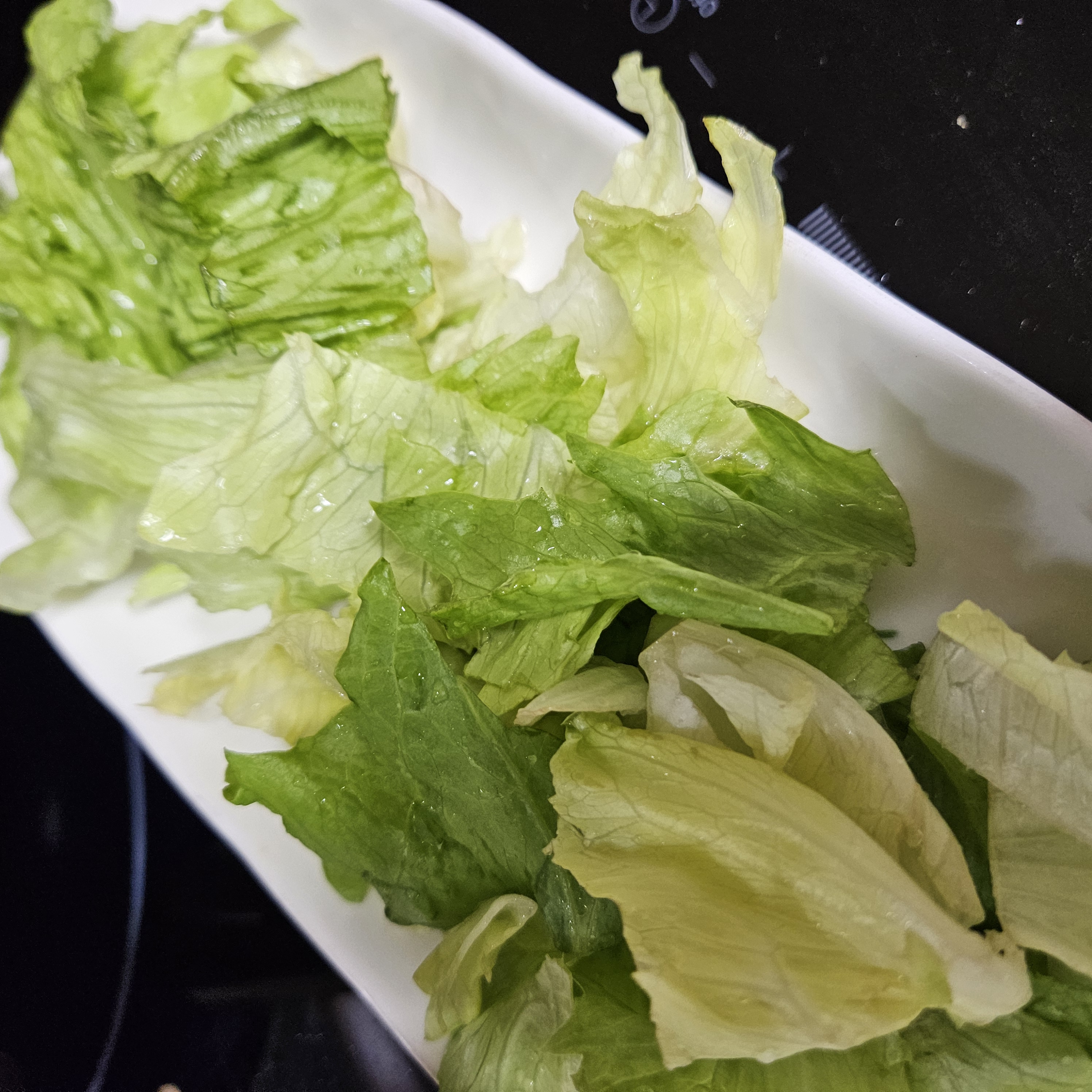 양배추도 좀 보였으면 좋겠는데 두부가 접시 폭 만큼이나 넓다보니 초록 양상추가 잘 안보이는..