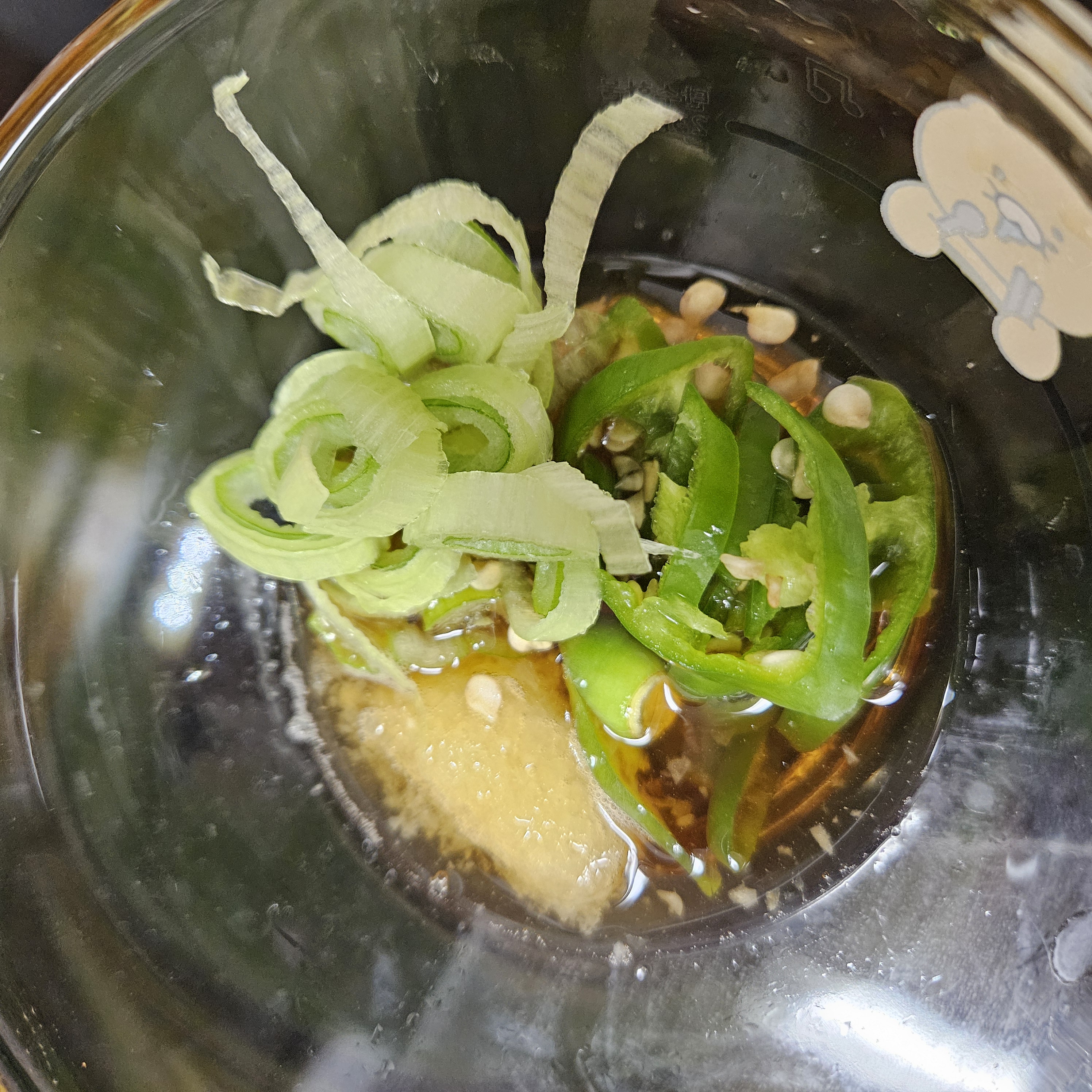 고추를 넣을까 말까 고민했는데 꼭 넣으세요! 저는 청고추를 얹어서 먹으니 뒷맛이 알싸하니 개운해서 좋더라고요. 부재료는 없어도 요리가 완성되긴 하나 확실히 부재료를 넣어주면 맛과 풍미의 깊이는 확 올라간답니다.
