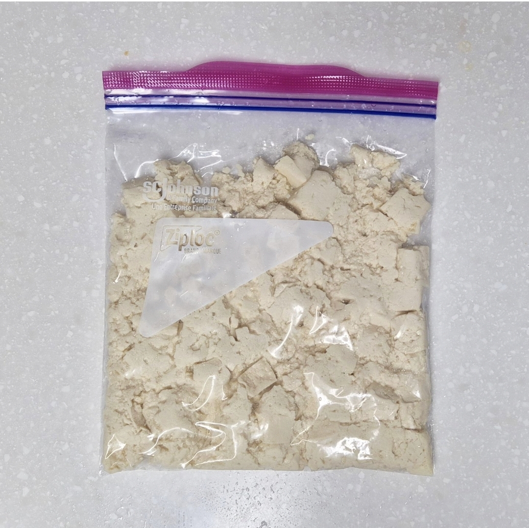 남은 두부는 깍뚝썰었다가 손으로 대충 주물주물 한 뒤 냉동실 고고!