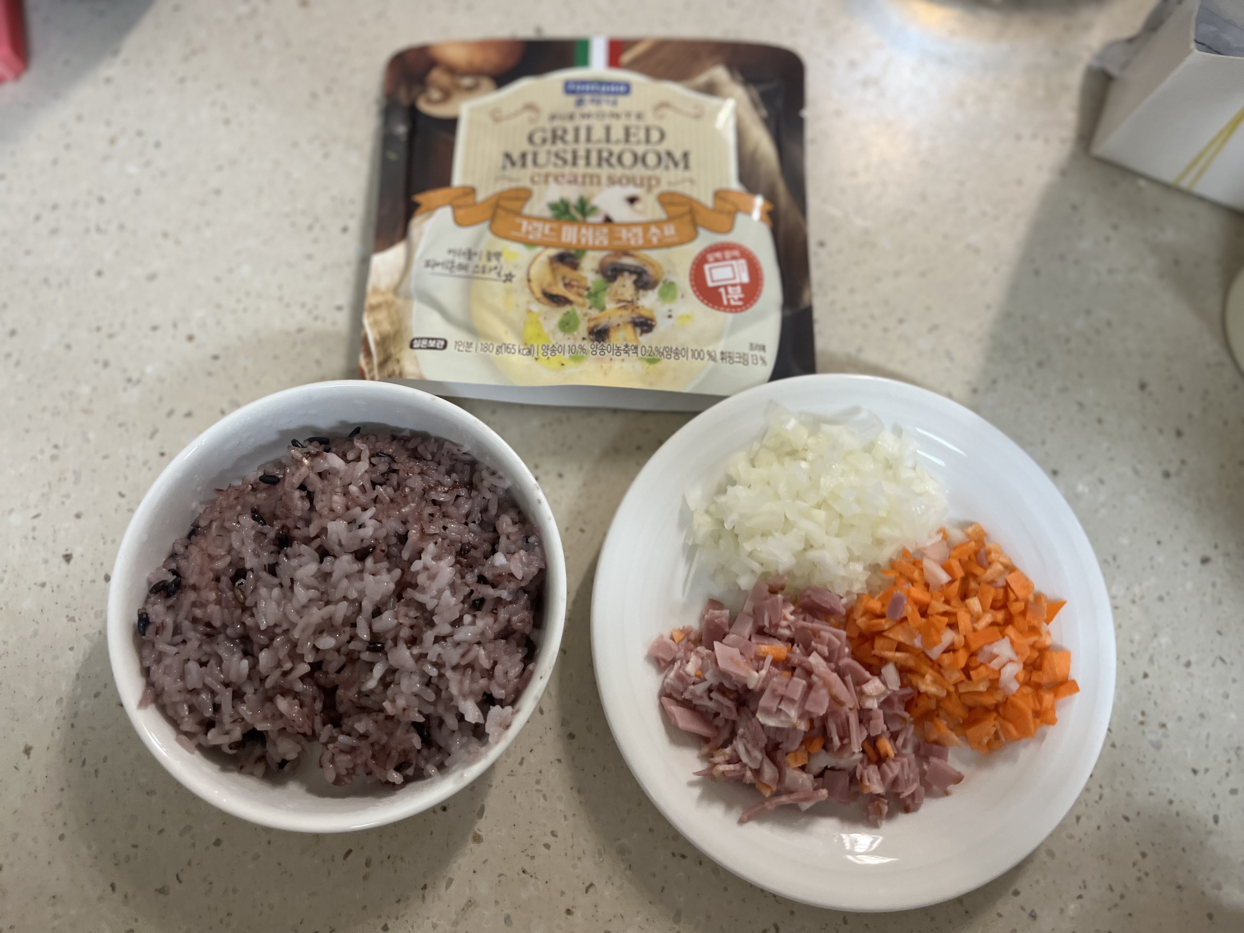 어제는 배고프다며 칭얼대는 딸램을 위해 전자레인지로 10분 만에 완성되는 리조또를 만들어봤어요!