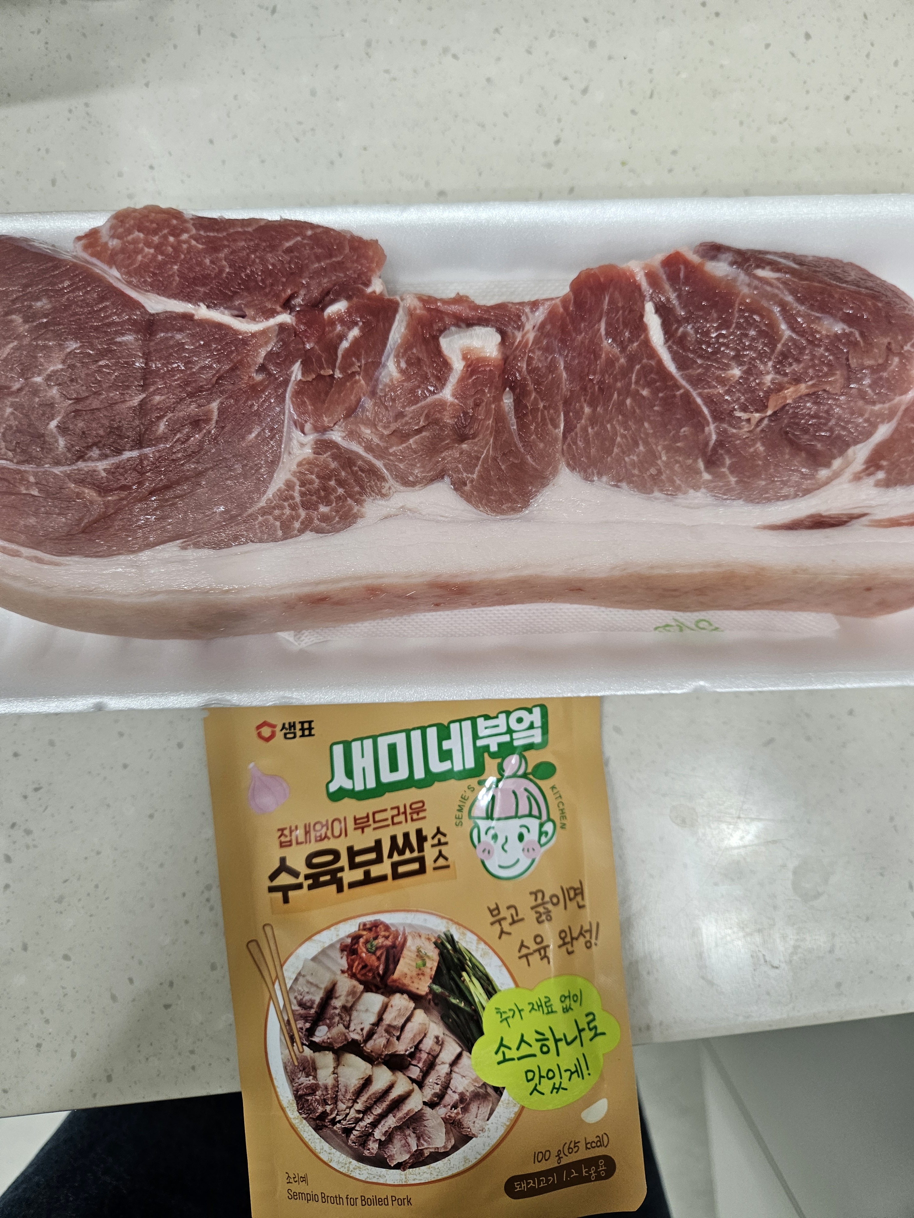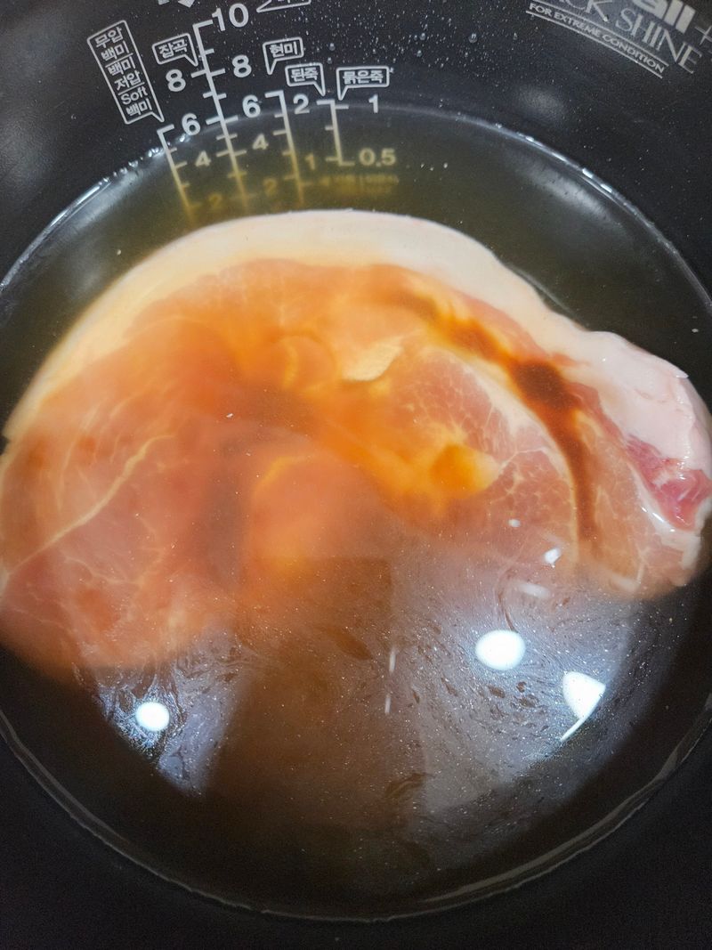 수육은 오래 끓이기 힘들거같아 밥솥을 활용해봤어요! 밥솥은 밥 해먹는 용도로만 써왔는데 수육소스와 함께 사용하니 너무 간단하고 야들야들하게 완성했어요!