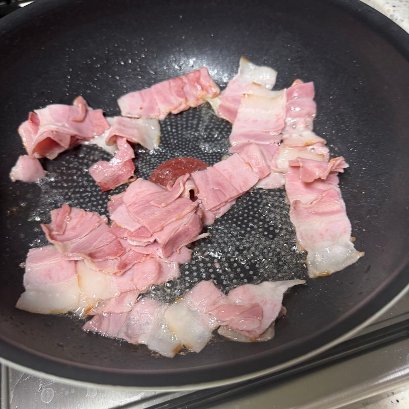 3. 볶은 재료들을 옮겨담고 파스타 면을 8분동안 삶는다