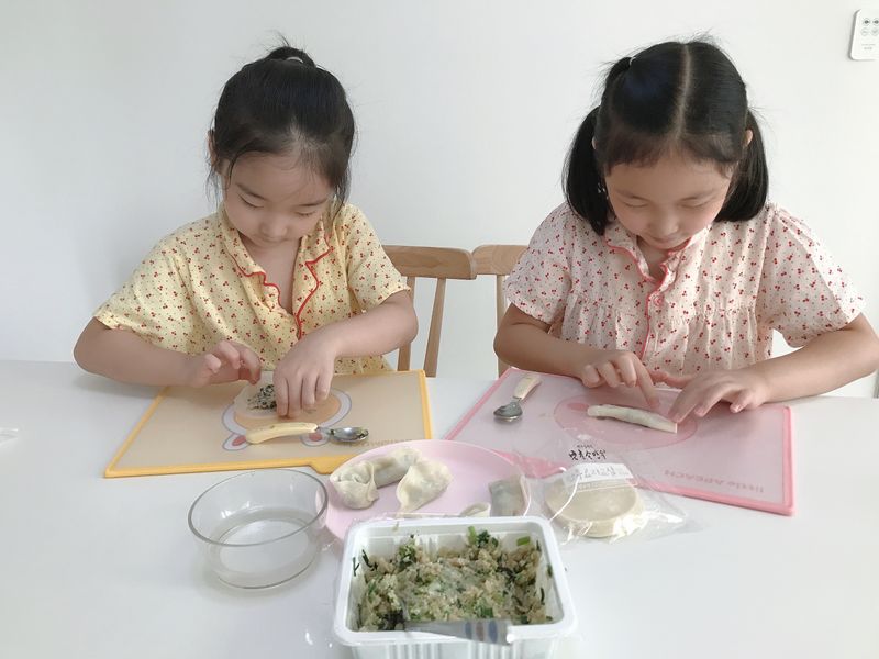 아이들의 인생 첫 만두빚기를 했어요. 만두를 예쁘게 빚으면 예쁜딸을 낳는다고 하는데 우리 예쁜 두 딸들도 예쁜딸을 낳을수있겠네요^^ 평소에 클레이로 조물조물 연습해서인지 제법 예쁘게 만들었답니다. 직접빚은 만두는 쪄서 간식으로 먹고, 남은 만두는 가족과 함께 만두국으로 한끼 맛있게 먹었어요. 직접만든 만두라 더 맛있게 잘 먹더라구요^^ 아이들이 너무 좋아하니 종종 이런 시간을 마련해봐야겠어요.