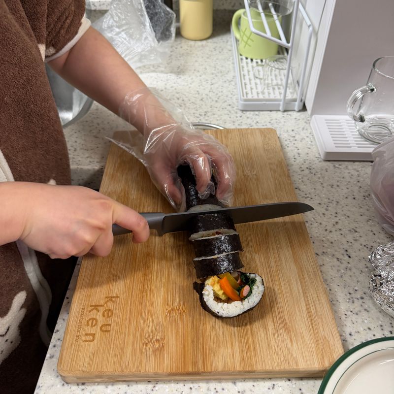 처음 해본것치고 김밥 비쥬얼이 훌륭한데요? 👏🏻👏🏻 집에서 만든 김밥은 진짜 너무 맛있는거 같아요 ㅋㅋ 기본 2-3줄 뚝딱 가능합니당🤣