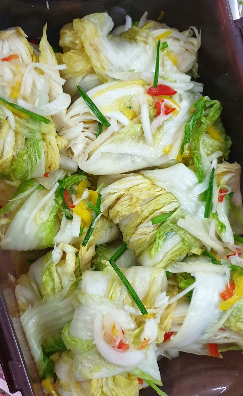 알록달록 백김치를 아삭아삭 맛있게 먹고,