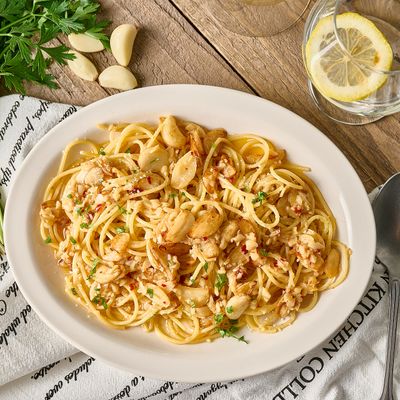 배달 시켜먹을까 고민하다가, 냉장고에 루꼴라 남은게 있어 후다닥 오일파스타를 만들었어요.