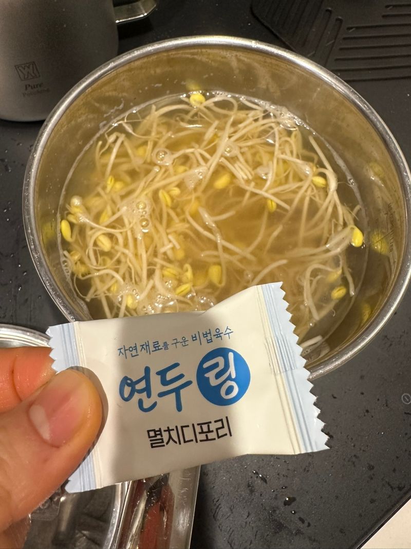 후다닥 끓인다고 콩나물 꼬리도 안떼서, 거의 5분컷 완성 느낌이었어요!