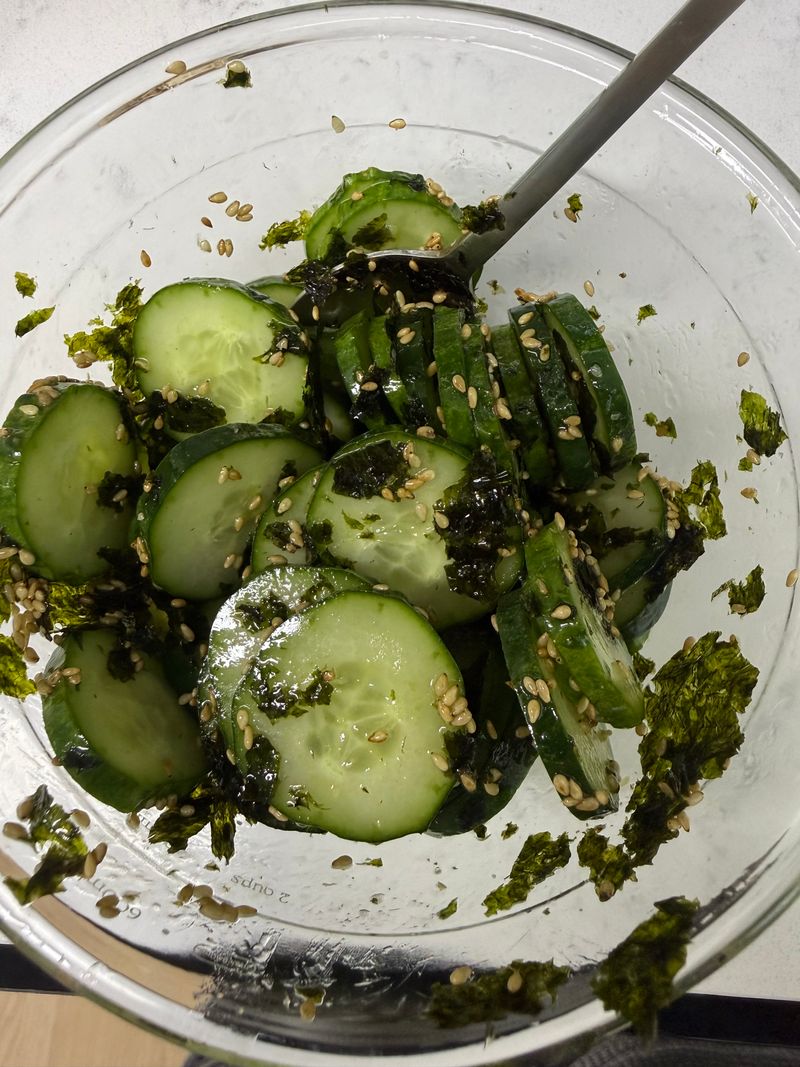 요리가 겁나고 귀찮은데 배달 음식은 싫은 분께 강추하는 오이김무침이었습니다💖