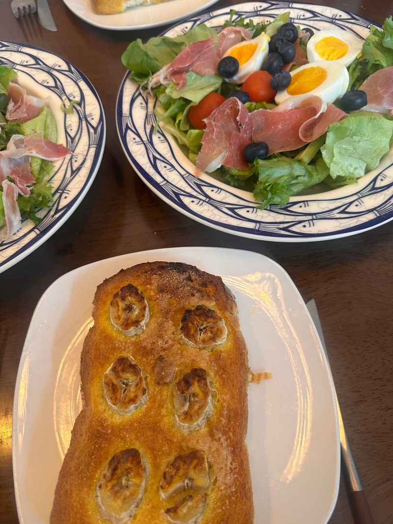 아침에 간단히 프렌치토스트(계란물 뭍힌 식빵) 를 오븐에 180도 10분 구워줬어요 바나나 하나 남아있어 살짝 올려줬어요 그리고 샐러드 만들어 함께 식구끼리 주말 아침을 오순이 도순이 즐겨보았어요! ㅎㅎ 쉽게 맛있게!
