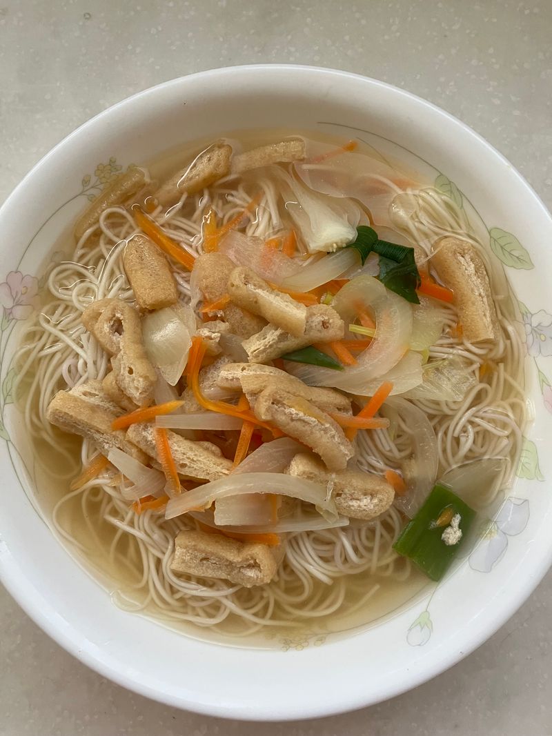 포장마차 맛 잔치국수 레시피를 보고 만들었는데 야채는 집에 있는 양파, 당근, 파를 활용하고 유부를 넣어줬어요.