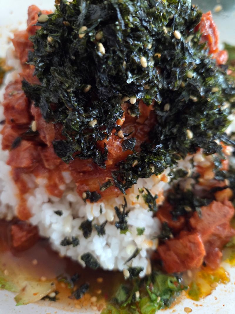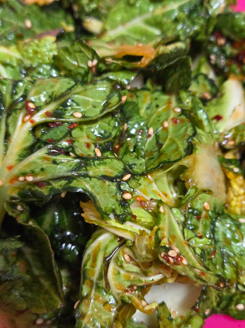 봄동나물 잘 세척해서 간장 다진마늘 고추가루 액젓조금 꿀 참기름넣고 조물조물 잘 무쳐서 비벼먹으면 끄읕! 참치넣고 김가루뿌리면 더 JMT
