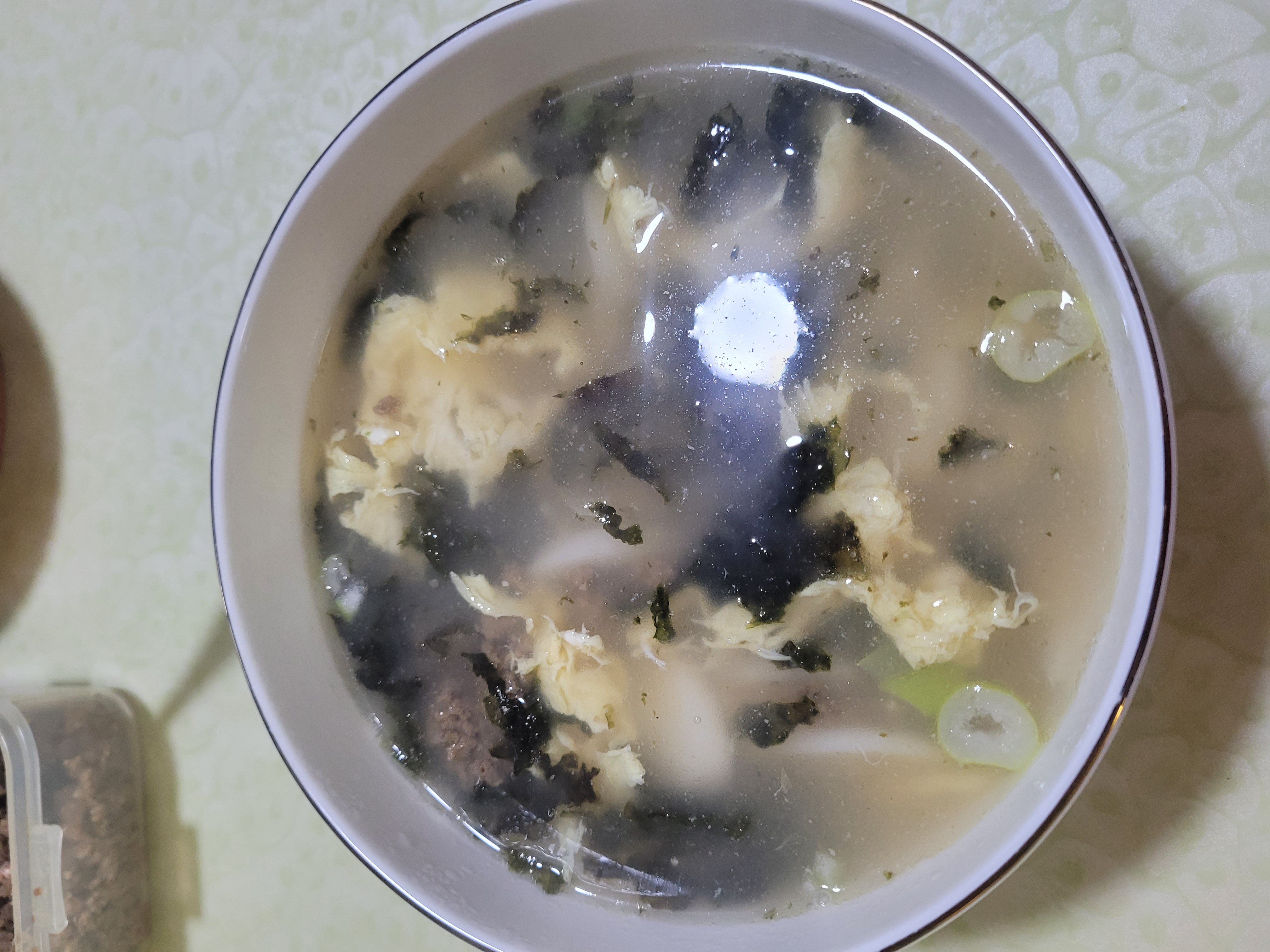 연두링을 넣고, 육수를 낸다음...떡국 넣고, 떡이 일을때쯤 연두순으로 간을 맞추고, 계란을 휘리릭 둘러주었습니다. 그 위에 대파, 쇠고기 볶은것, 김가루를 고명으로 올려주었습니다.