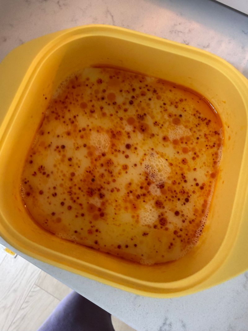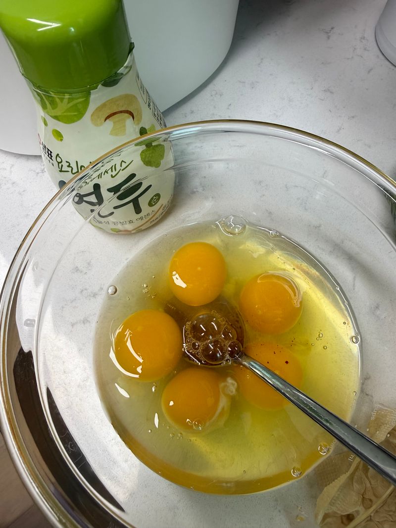 2. 계란 + 연두 + 물(물량은 전자렌지 용기 크기 때문에 줄였어요)