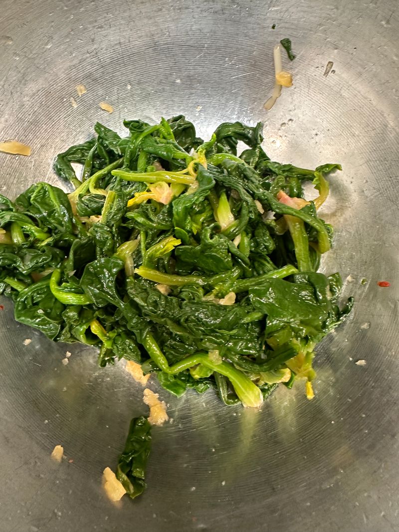 2) 끓는물에 시금치를 빨리 데쳐서 꺼내주고