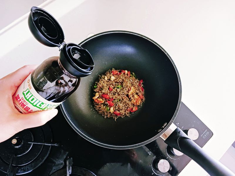저희집 기본 양념장[된장/고추장/간장/연두]는 모두 샘표제품이라 재구매는 당연한건데 소스류 중에서 출시되자마자 지금까지 재구매하는 제품이 바로 새미네부엌 [아몬드 멸치볶음 소스]랍니다. 이 소스 나오기 전에는 저도 직접 간장에 물엿넣고 맛술, 참기름,등등 이것저것 양념장 만들어서 멸치볶음을 만들었었는데요. 이 소스를 만난 후부터는 멸치볶음은 무조건 이 소스로만 만들어요. 무엇보다도 일단 아몬드 향이 베여있는 간장양념 맛이 절대 집에서 만들어서는 나올수가 없더라구요. 다른 재료없이 딱 멸치랑 소스만 넣어도 진짜 너무 맛있는 멸치볶음이 완성되고 진짜 3분이면 멸치볶음이 뚝딱 만들어지니깐 새벽에 출근하는 저같은 경우에는 요리시간을 아껴주는 너무나 고마운 소스랍니다.