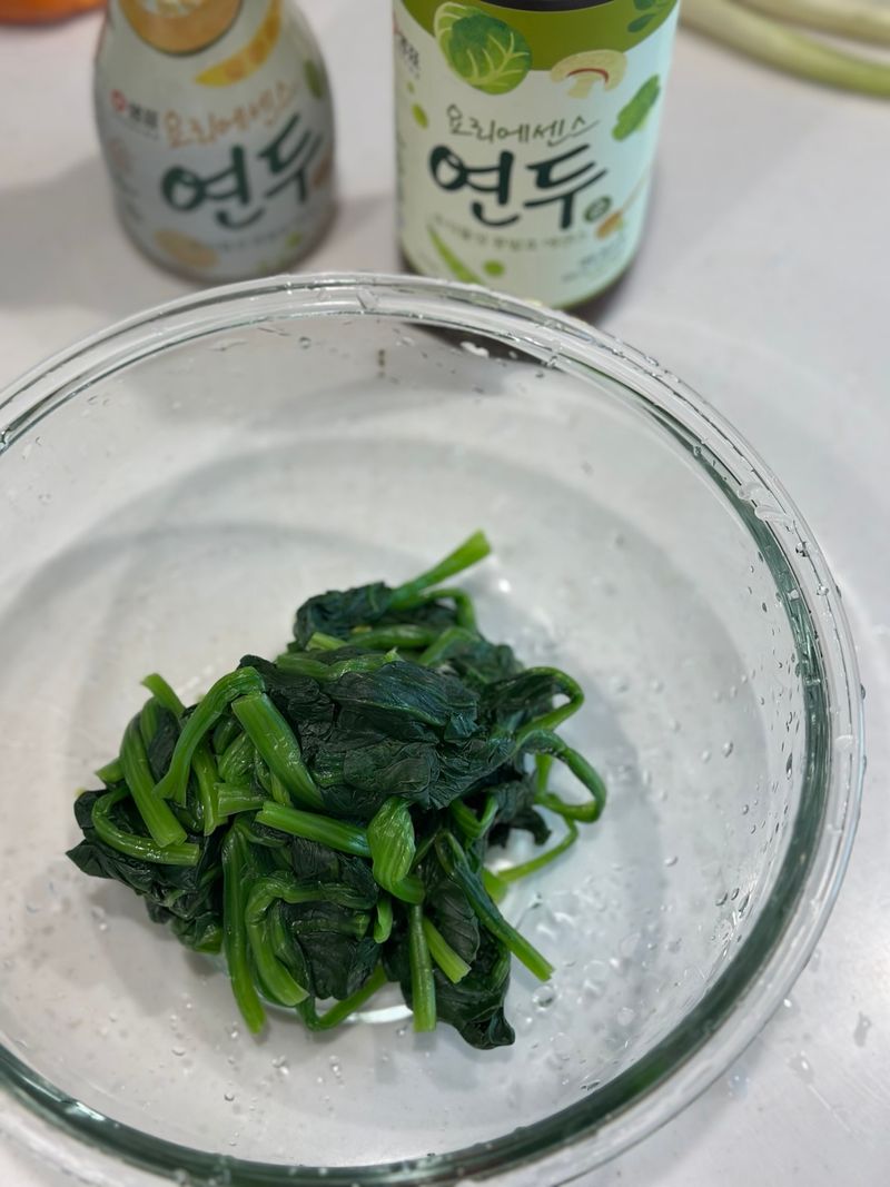 데친 시금치 물기 꼭 짜서,