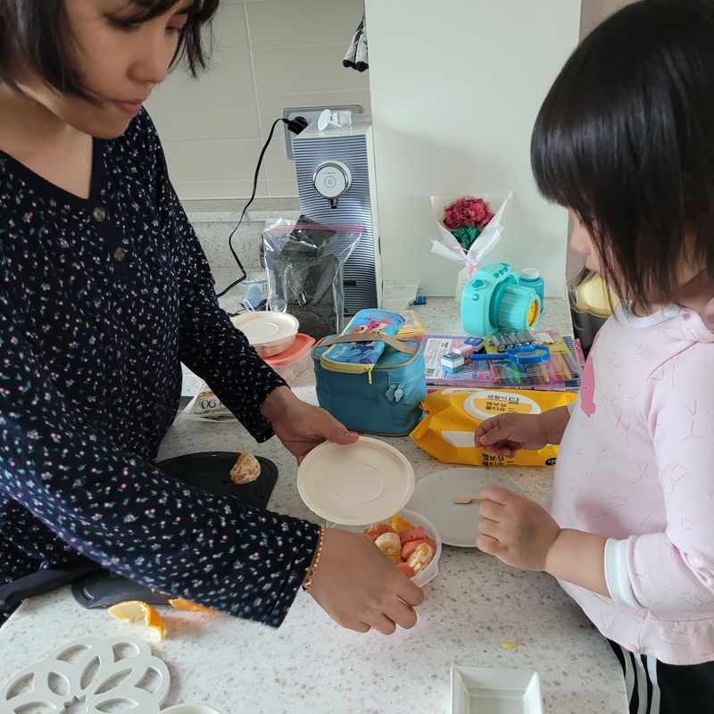 태어나 처음 어린이집에서 가는 소풍가는날! 아침부터 일찍 일어나 엄마랑 도시락만들기 쪼끄만난 주먹밥과 과일꼬치가 주메뉴! 나도 만들거야! 나도 먹을거야!!😋 맛있게 재밌게 같이 #요리해요