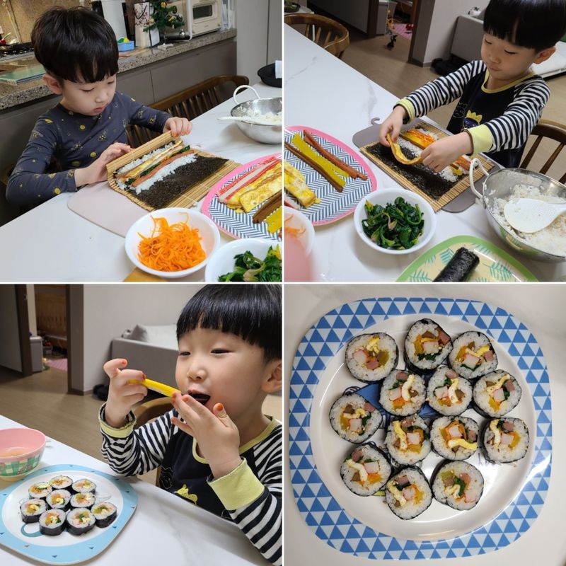 엄마와 형아랑 "돌돌말아 김밥" 역시 김밥은 직접 말아먹어야 맛있죠😋 . 내가 만든 김밥 최고!!