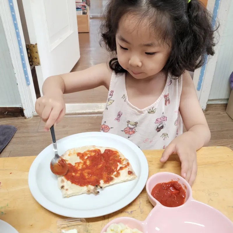 아이들이 가장 쉽게 도전할 수 있는 초간단 토마토소스 피자. 하지만 치즈순이들이라 잘 먹어서 엄마 맘이 흐뭇해지네요. 우리 꼬맹이들 뭐든 가림없이 잘 먹고 건강히 커주기만을 바란답니다. 행복하고 즐겁게 자라주기를.