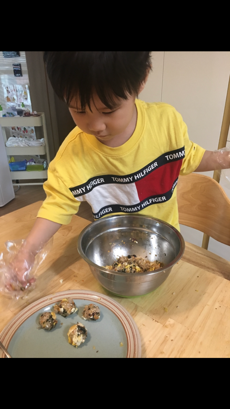 엄마와 같이 주먹밥을 만들었어요. 내가 직접 만들고 만들면서 먹는 주먹밥은 정말 꿀맛 이에요. 예쁘게 동글동글 한입에 쏘옥 주먹밥 같이 만드니 더 맛있어요.