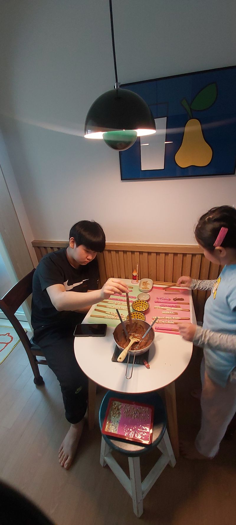 오빠와 초코렛을 녹이고 길쭉길쭉 빼빼로에 초코릿 여러가지 토핑을 얹어 완성! 가게에서 파는 빼빼로보다 더 더 맛있어요.