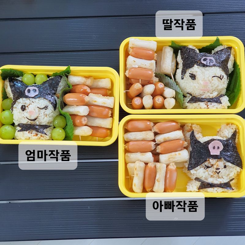 각자 자기도시락은 직접 만들어서 집근처 자라섬으로 소풍가서 일주일동안 쌓인 피로를 날리고 옵니다... 캐릭터를 오리고 붙이면서 만들다보니.... 만드는 재미도 있고... 가족끼리 함께하니.... 대화 시간도 자연스럽게 늘어납니다... 매주 이런시간이 쌓이다보면... 아이의 사춘기도 엄빠의 갱년기도 무사히 넘어가겠지요???