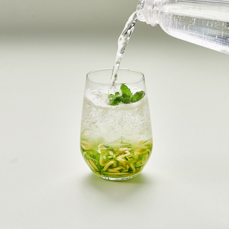 잔에 애호박 당절임(3스푼)과 탄산수, 얼음을 넣어 섞어주면 완성!