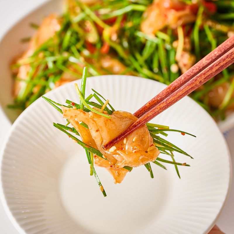 꾸덕하고 깊은맛에 참나물의 향긋함을 더하다