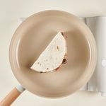 약불로 예열한 팬에 퀘사디아를 올려, 앞뒤로 1분씩 치즈가 녹을 때까지 뒤집어가며 구워주세요.