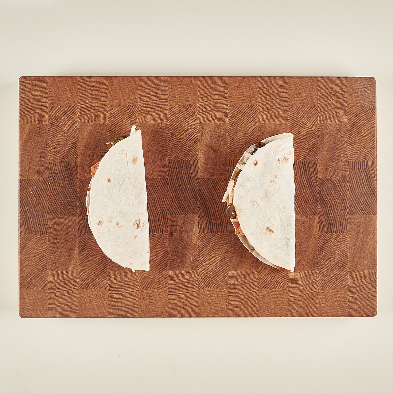 2. 완성한 퀘사디아는 반으로 접은 그대로 즐겨도 좋고, 반으로 잘라 먹기 좋게 준비해도 좋아요.