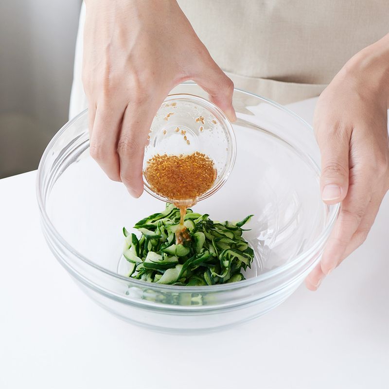 오이를 끓는 물에 살짝 데쳐 비린내는 줄고,