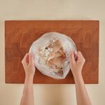 부침가루와 동태를 봉지에 담아준 후, 흔들어 동태에 골고루 가루를 묻혀 주세요. 가루가 얇게 묻도록 바로 털어내 주세요.