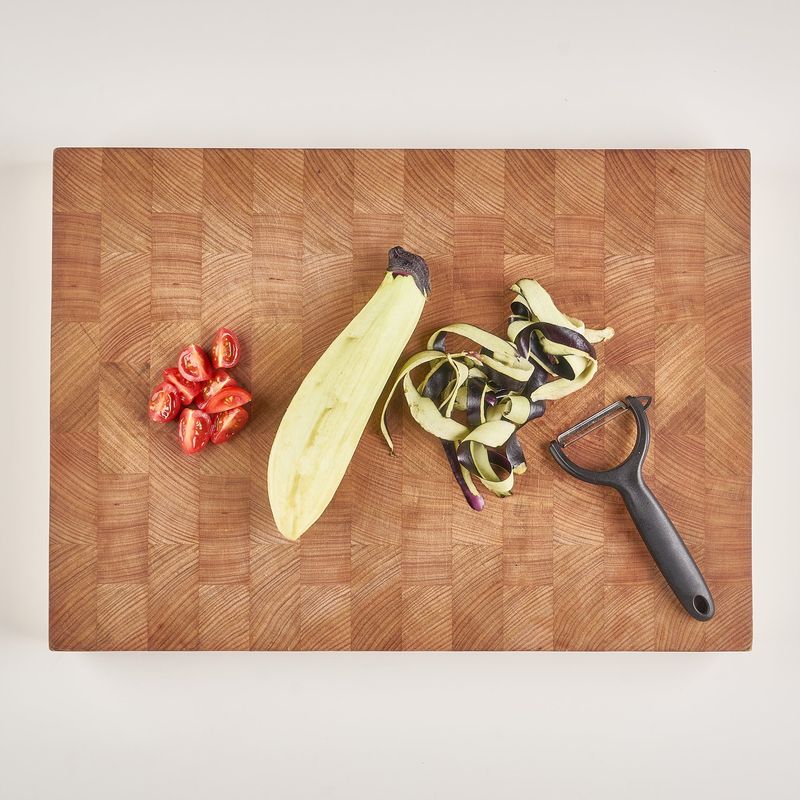 가지는 잘 씻은 후, 필러로 껍질을 얇게 벗겨주고 가지 껍질은 얇게 채 썰어 준비해주세요. 방울토마토는 4등분으로 썰어 주세요.