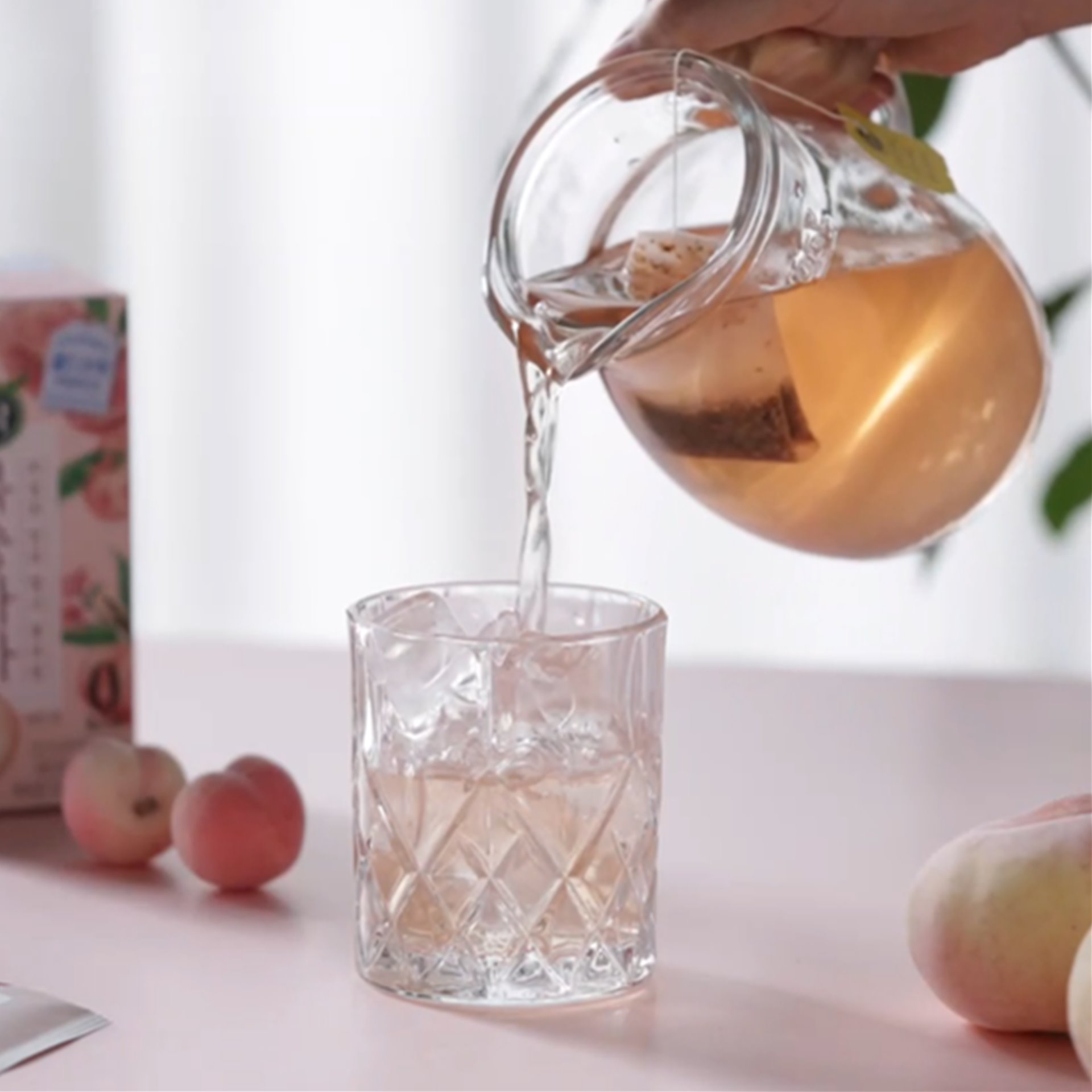 ​물 200ml에 납작복숭아차 티백 1개를 넣고,