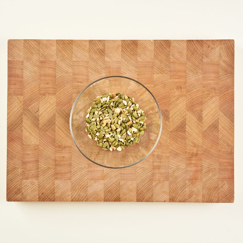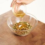 볼에 곱게 부순 호박씨와 캐슈넛, 꿀과 계피가루를 모두 넣고 섞어주세요.