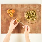 곶감 꼭지를 떼고 안에 있는 씨를 제거한 후, 속재료를 가득 채워 넣어 주면 완성!