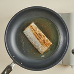 - 갈치를 뒤집을 때 팬에 식용유가 넉넉한지 확인 후, 기름 부분에서 갈치가 구워질 수 있도록 팬을 돌려주세요.