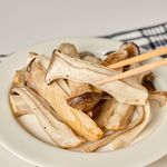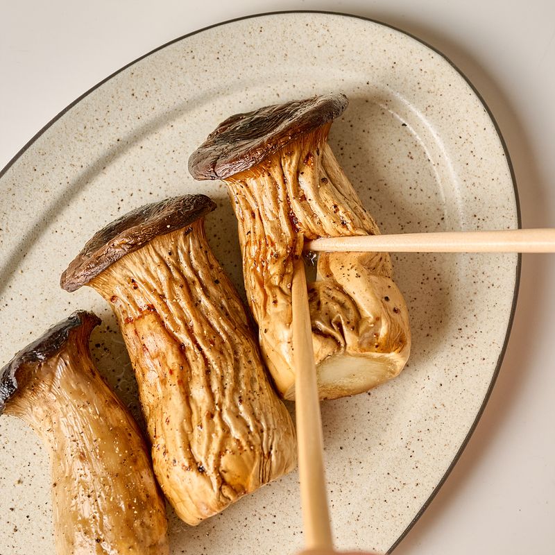 새송이는 1~2분 식힌 후, 가위를 이용해 1~2cm 두께로 어슷하게 자르거나, 손이나 집게로 결 방향대로 길게 찢어주세요. 후추를 곁들여 먹으면 좋아요.