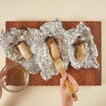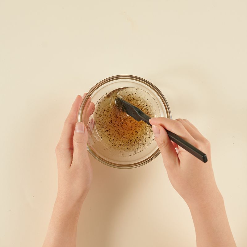 연두순과 식용유를 섞어 양념(유장)을 만들어 주세요.호일을 제거한 새송이버섯 겉면에 양념을 골고루 1번씩 발라 주세요.양념을 바른 새송이버섯은 호일 없이 200℃ 에어프라이어에서 10분간 겉면이 더 노릇노릇해질 때까지 구워주세요.