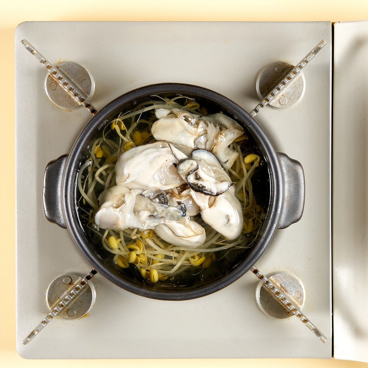 굴이 가장 맛있을 때, 손질한 굴을 넣고 가볍게 익혀주면 끝!취향에 따라 계란 노른자도 함께 넣으면 고소하고 든든해요.